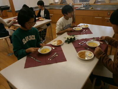 今日は、年1回のYasyouレストランの開店日です。6年生のテーブルマナー教室です。