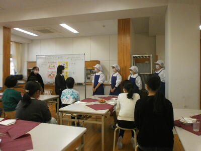 最後に今日のメニューをサーブしていただいた栄養士、調理員の皆様にお礼を言いました。