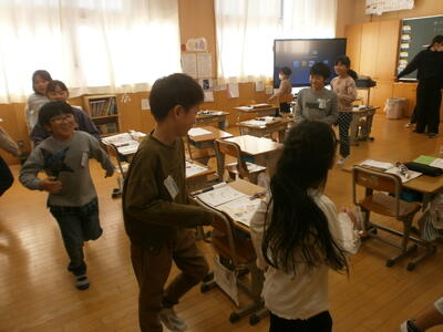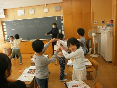 楽しそうに体で音楽を表現する3年生。音楽は音を楽しむと書きます。まさに音楽を楽しむ時間になりました。