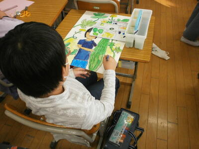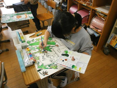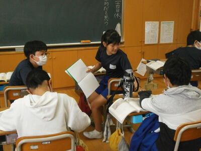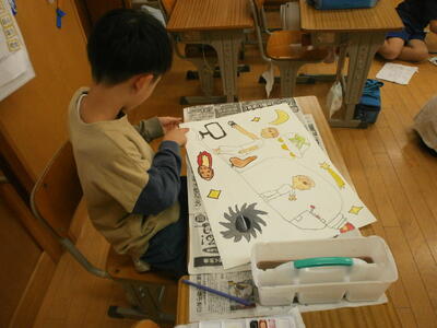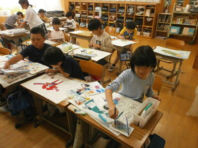 子どもたちは効果的な表現方法について考え、友達と意見交換をしていました。これを機に鳥獣戯画に関心をもつのもいいですね。読み物の楽しさの一つは、考えや思いが広がることだと思います。