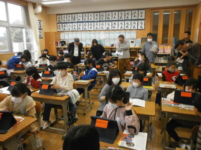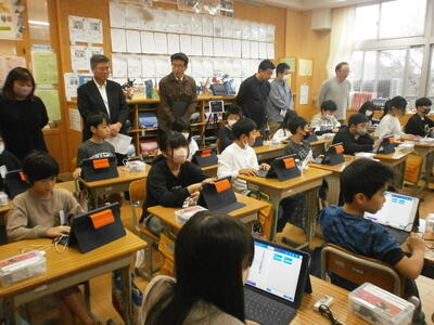 5年生は、プログラミング学習に取り組んでいました。microビットを使い、講師の先生と一緒にコンピュータにプログラムを入れながら学習を進めていました。委員の皆さんは、プログラミング学習を始めて体験された方もおいでになり、勉強になったとおっしゃっていました。