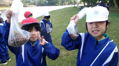 2年生がおはじきを使っていました。1年生の時にはよく使っていましたね。