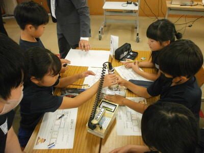 4年生は、放射線測定器で実際のモノの放射線量を測っていました。自分の予想と異なる結果が出た子どももおり、放射線への知識が深まったようです。