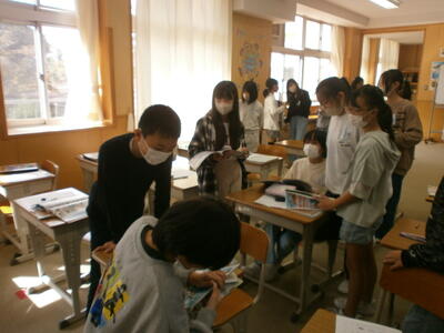 友達や外国語の先生と確認しながら、自分の話す言葉を確認している姿も見られました。