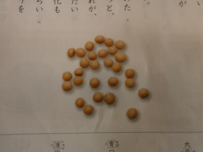 これは何でしょう。3年生の国語の教科書に載っていた大豆の写真です。3年生は「すがたをかえる大豆」という説明文を学習しています。実は、この大豆。様々な物に姿を変えていることを文章から読み取ることができます。