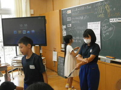 その後、子どもたちが自主的に自分の考えを伝え合う場面が…学習の進め方が主体的になっている5年生。すばらしいですね。