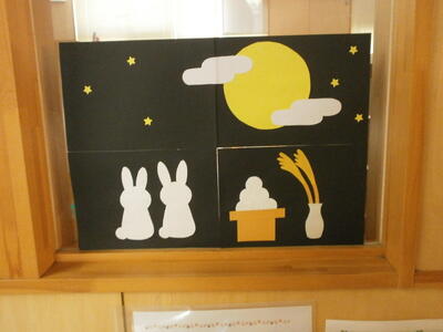 休み時間に学校の図書館に行ってみると、お月見の掲示が…