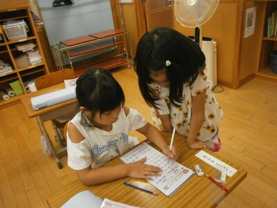 勉強したり、音楽会の練習をしたり、教具で遊んだり…元気に外遊びをする子どもも多くいます。季節外れの暑さにも負けず、子どもたちの休み時間は有意義な時間になっているようです。