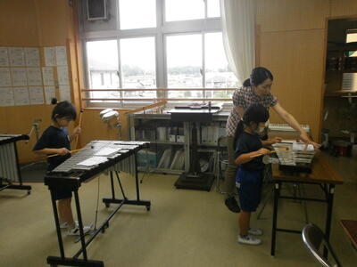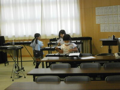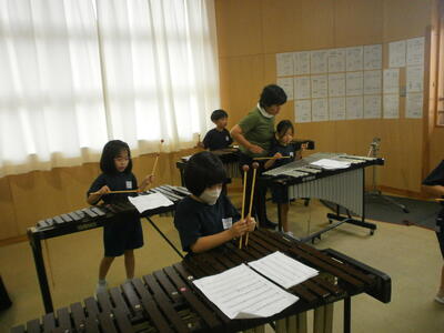 打楽器パートも練習していました。合奏、楽しみ♫ 楽しみ♩