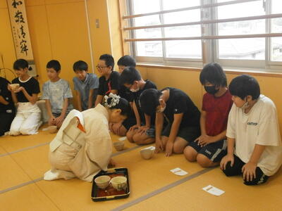 今日は、矢吹町諸流茶道連合会の皆様を講師としてお招きし、6年生の茶道体験を行いました。室町時代に始まり現代まで続く茶道を体験しました。