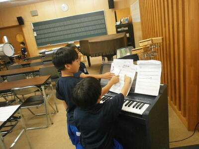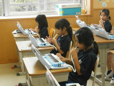 メロディーの鍵盤ハーモニカは、みんなで音を合わせます。