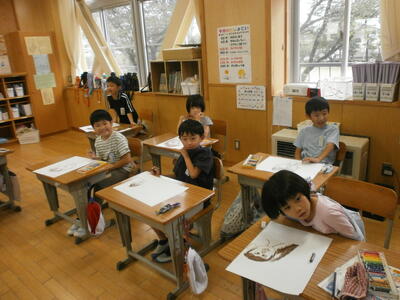 2年生が、自分を描いたそうです。なかなか上手ですね。それぞれの特徴がでています。