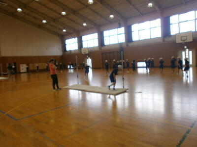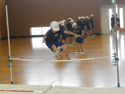 3年生が体育でゴム跳びの練習をしていました。みんなリズム良く跳ぶことができていました。