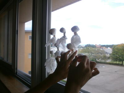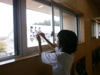2024年9月19日 13時00分6年教室の窓に、てるてる坊主が…