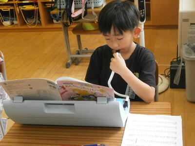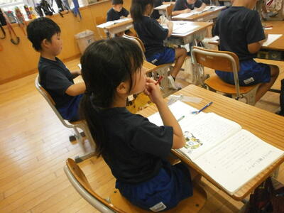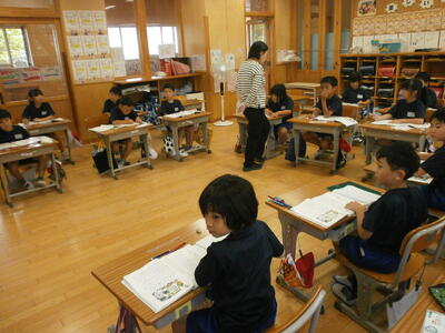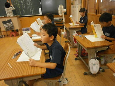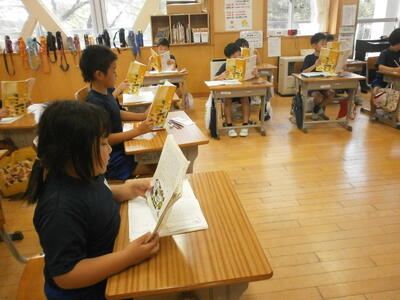 正しい姿勢で、声もしっかり出ています。学習訓練がしっかりしている2年生です。説明文の楽しさを味わってください。