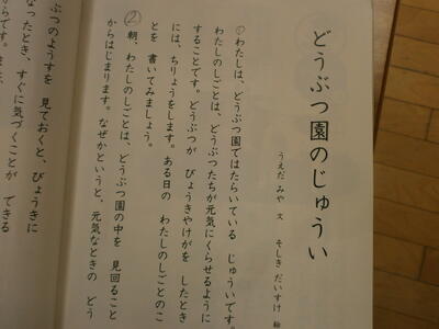 2年生の国語の読み物に、「どうぶつ園のじゅういさん」というお話があります。動物のお医者さんである獣医さんの一日が時系列で書かれているお話ですが、なるほど、と思うことがたくさん書かれています。