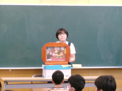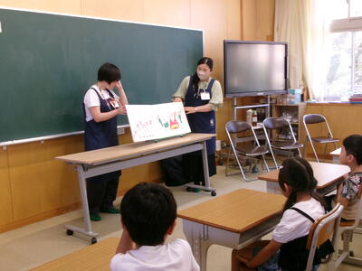 今日は、矢吹町図書館の方々においでいただき、低学年対象のお話会を行いました。まずは、1年生。みんなお話に引き込まれていました。