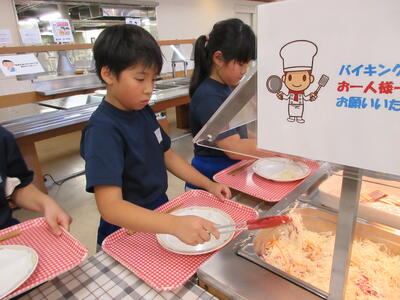 ♪やきいも やきいも おなかがグー♪ やきいものうたを歌いながらじゃんけんで盛り上がる2年生。