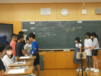 子どもたちが、自分の言葉で説明します。今、矢吹小学校ではこの活動を大事にしています。先生が説明するだけでなく、子どもたち同士で考え方を共有していくことで、学びが深まります。