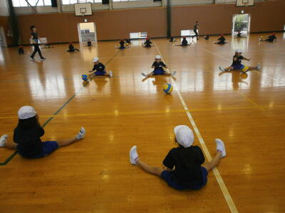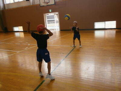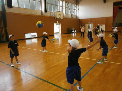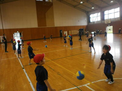 1年生が体育の学習で、ボール遊びに挑戦していました。