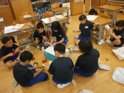 2年生は生活科の学習で、おもちゃづくりに取り組んでいました。