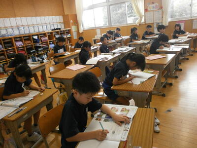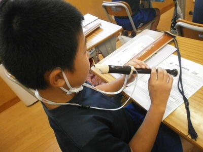 5年生は、朝の時間など隙間の時間も利用して練習に取り組んでいます。今日は、リコーダーの練習をしていました。