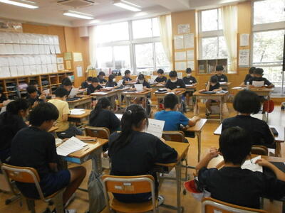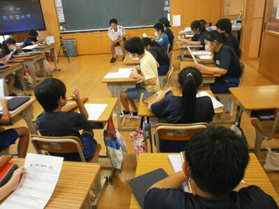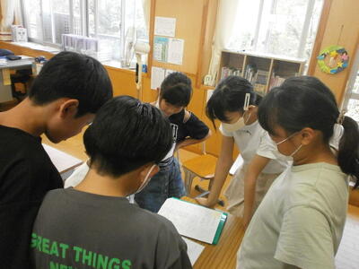 6年生は、9月20日実施予定の修学旅行について、各班ごとに話合いを進めていました。