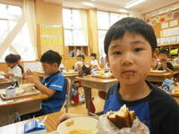 給食の人気メニューの上位に入る『あげパン』。今日の給食は、ココアあげパンが登場しました。1年生に行ってみると…