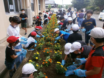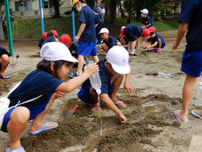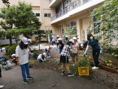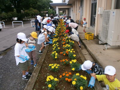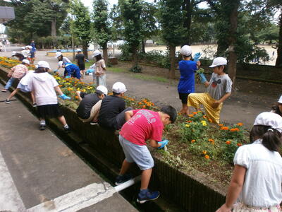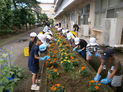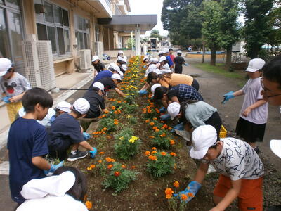 7月17日・18日とらんらん花壇ボランティアが行われました。この活動は、1・6年、2・5年、3・4年の教第学級で力を合わせて活動します。