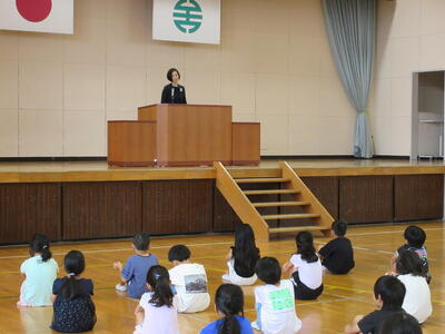 校長のお話、2・4・6年の代表者からの1学期の反省と2学期のめあてについて発表がありました。