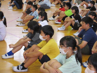 生徒指導の先生から、「くま」「水」「自転車」に気をつけて「命」を守ろうという話がありました。矢吹小学校の約束を守って、楽しい夏休みを過ごしてください。