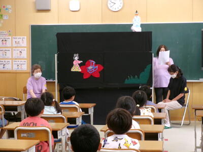 今日は、矢吹町の「おひさま会」の皆様においでいただき、低学年の読み聞かせを行っていただきました。