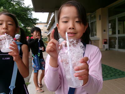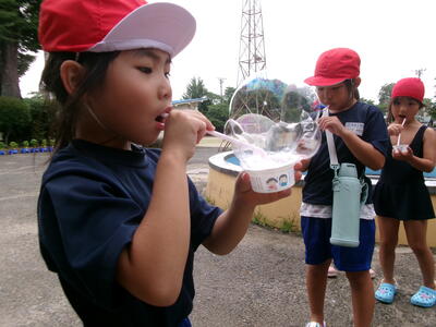 みんなでぶくぶく。きれいなシャボン玉ができました。