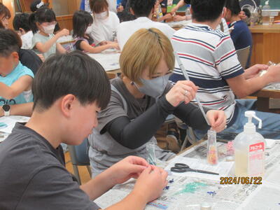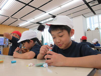 まず、みんなでハーバリウムづくりを楽しみました。すてきな作品ができあがりました。