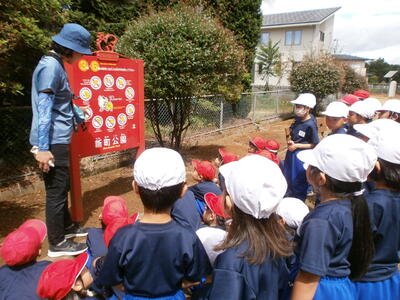1年生が学校周辺を散策する町探検が行われていますが、今日は新町公園まで出かけて遊んできました。