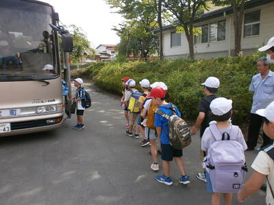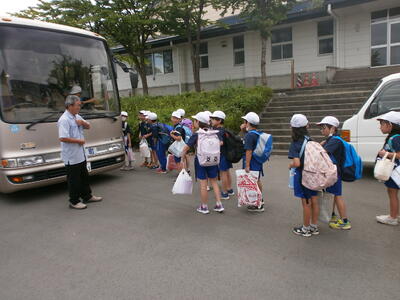 2年生が、りんどう湖ファミリー牧場に向けて出発しました。