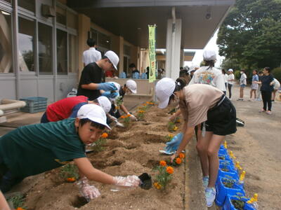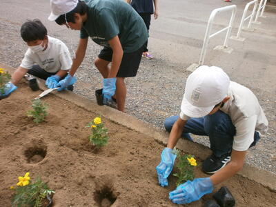 先日は、4年生に続き、5・6年生がボランティア活動の一環で、花壇にマリーゴールドを植えてくれました。