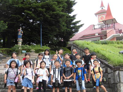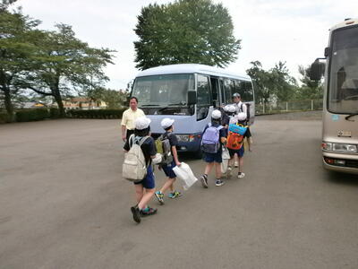 今日の活動に必要な荷物をいっぱい持って元気に出発し、全員無事に到着して活動が始まりました。活動の様子については、のちほどお伝えします。