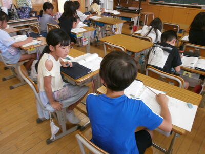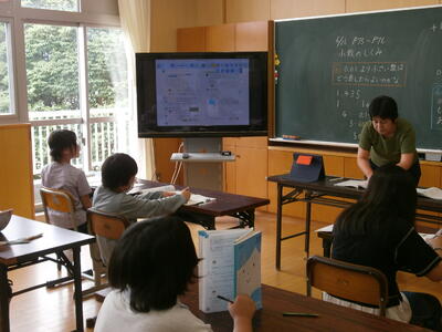 4年生は、算数の学習で小数点を使った数の表し方を学んでいました。