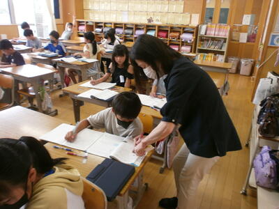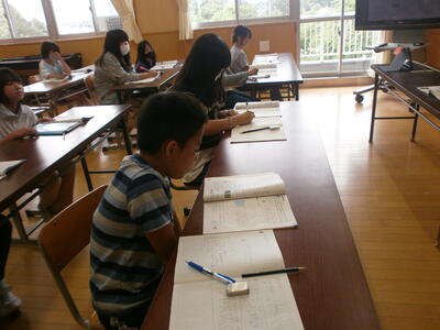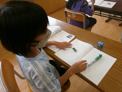 2つのクラスに分かれて小数を使った表し方を学習していましたが、まず既習の1kgが何gかも大事な問題でした。量感は日常生活で養われるものでもあります。ぜひ、家にある物、買い物などで、kg、mなどの重さや長さなどの単位を一緒に確認してみることをお勧めします。