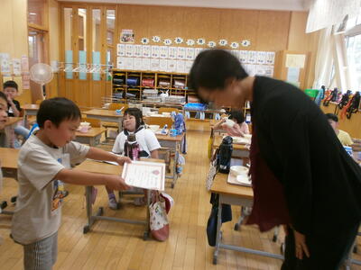 今週から、読書達成賞の表彰を行っています。各学年によって表彰基準があり、基準に達した子どもたちを随時表彰していきます。6月11日は1年生、12日は2年生の表彰を各学級で行いました。