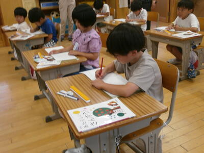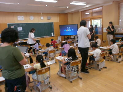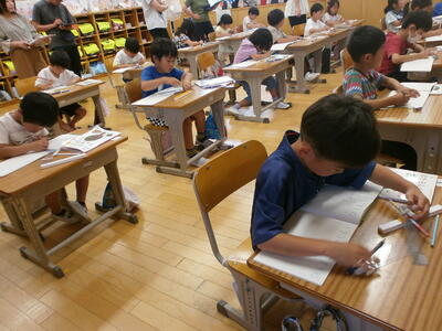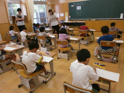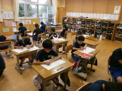 先生の説明を聞いて真剣に質問紙に取り組む子どもたちの姿が見られました。