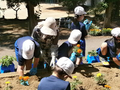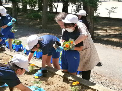 今日は、地域ボランティアの方々にもおいでいただき、苗植えを手伝っていただきました。暑い中でしたが、ありがとうございました。