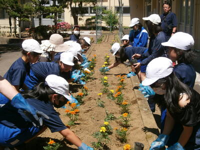 きれいに植えられたマリーゴールドたちがみんなの心を温かくしてくれますね。