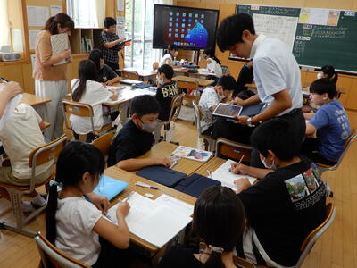友達と学び合う姿、タブレットを活用して学ぶ姿など、子どもたちが意欲的に学習に取り組む姿が見られた授業でした。