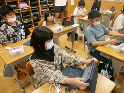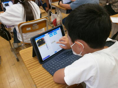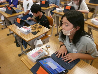 この後、5年生はじゃんけんゲームを作るそうです。ちなみに6年生は、ロボットカーを作るそうです。来週も続きがあります。完成が楽しみですね。