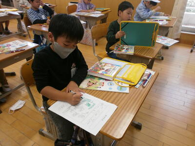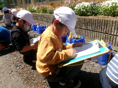 習いたてのひらがなを使って観察カードを書いていました。入学して1ヶ月半。立派な小学生ですね。