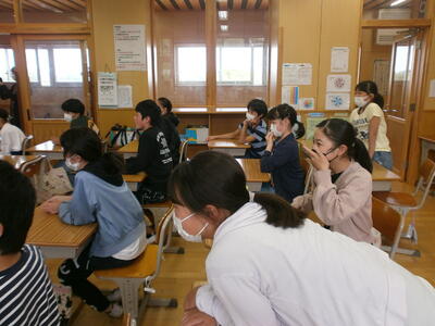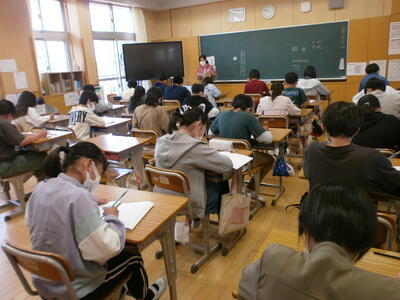先生の話をしっかり聞いてノートも真剣に取る3年生。発表も上手です!!