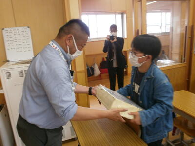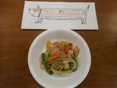 と6年生が校長室に来てくれました。今日は、調理実習をして、彩りのよい野菜炒めを作ったそうです。