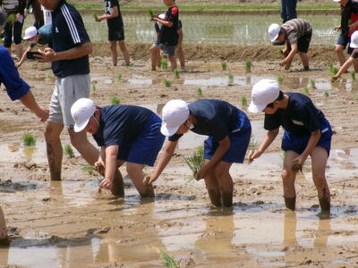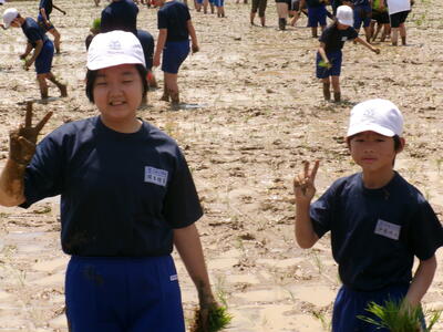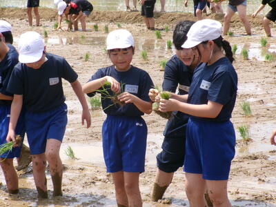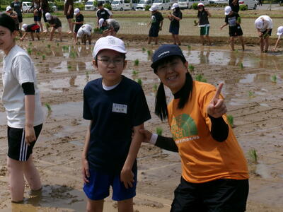 参加者全員、田んぼに入ることができ、上手に苗植えをすることができました。田んぼに足を取られ、泥が服についてしまった子どももいましたが、みんな一生懸命苗植えをしていました